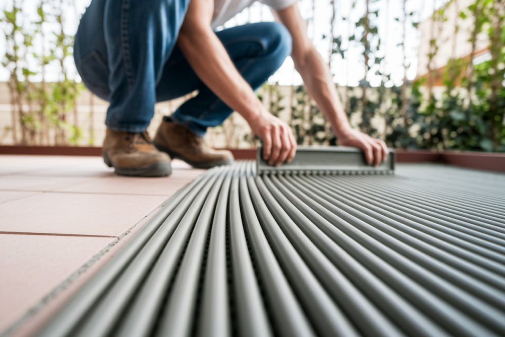 Cette technique vous permet de corriger les défauts de votre support et de préparer idéalement votre terrasse pour recevoir du carrelage, des lames composites ou même une résine décorative.